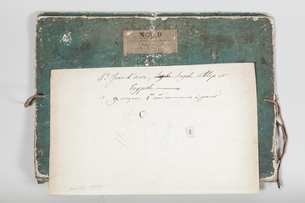Ensemble de onze dessins compris dans un portefeuille annoté: "Saint-Jean d'Acre, Seyde Alep et / Tripoli, croquis, un est commencé à graver".