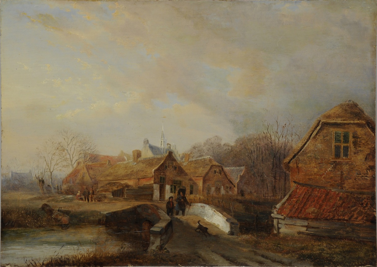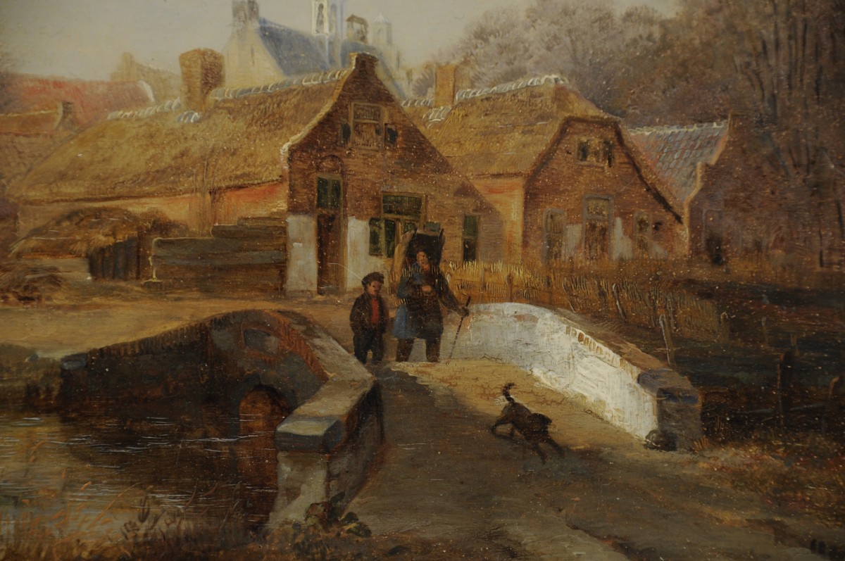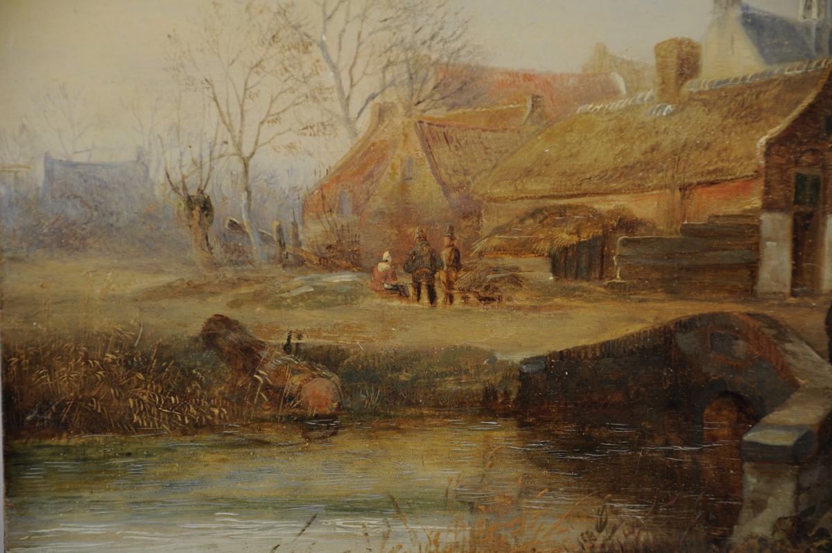 Nicolas ROOSENBOOM (1805-1880) Le passage du pont.Huile sur bois, signée...