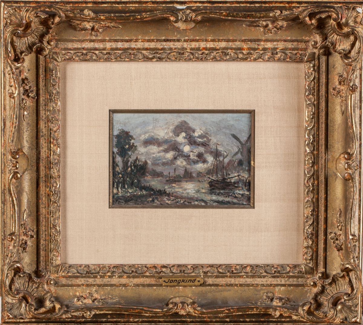 Oeuvre en rapport: “Clair de Lune sur un canal, Dordrecht” n°826, p.306 du catalogue critique de l’Oeuvre de Jongkind par Adolphe Stein, Sylvie Brame, François Lorenceau et Janine Sinizergues, éd. Brame & Lorenceau, 2003.