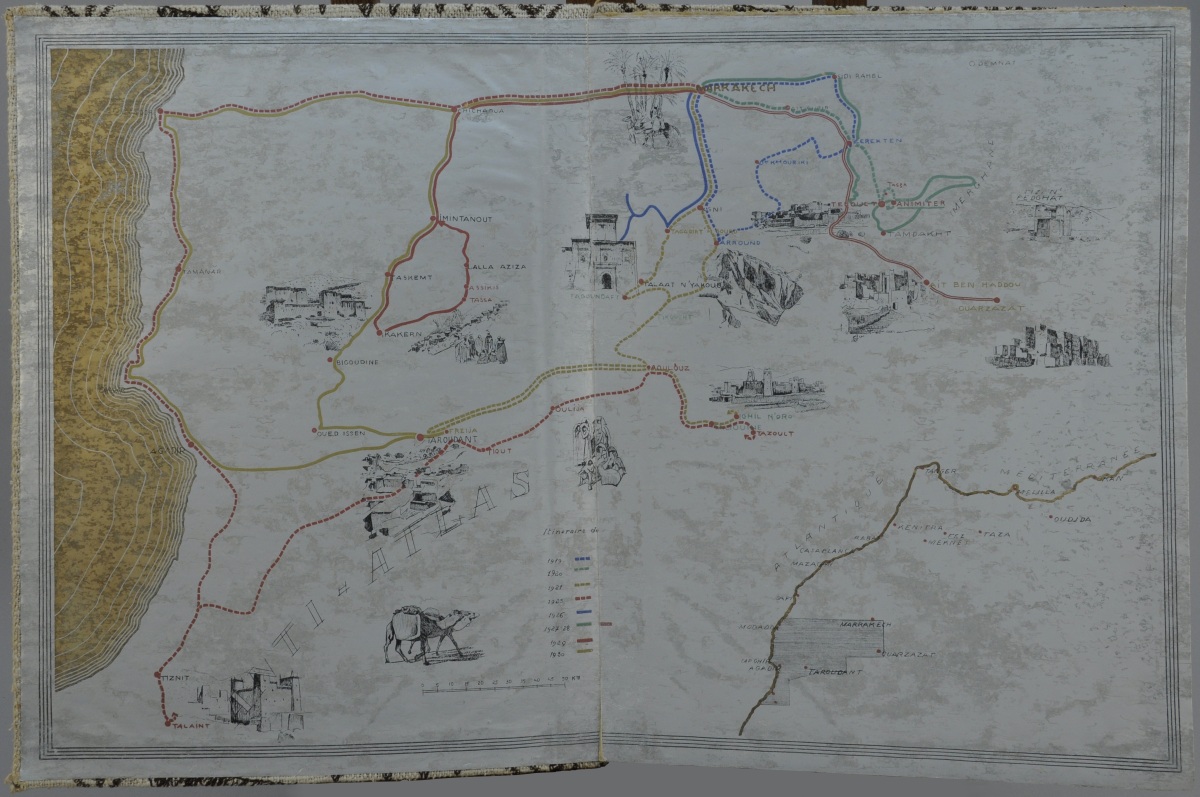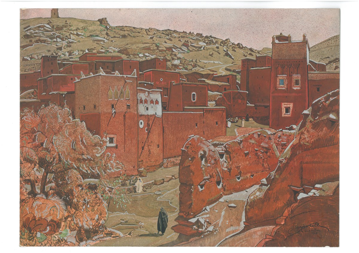 Chaque planche offre la reproduction luxueuse des vues préférées de l'artiste, et sélectionnée par lui: sites, personnages ou villages de l'Atlas...