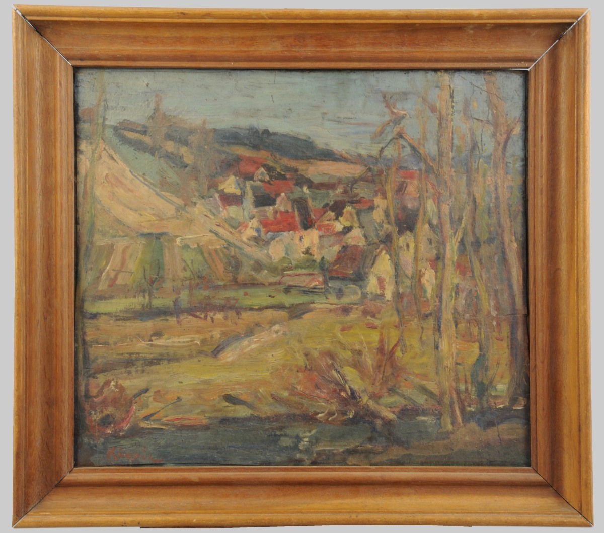 Toile marouflée sur panneau signée en bas à gauche.
