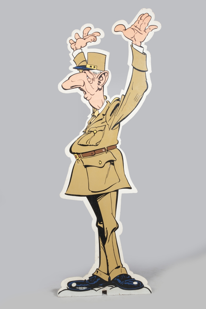 À l'occasion de l'exposition "Les Années 60. 1960-1969, La Décade triomphante" organisée à la Fondation Cartier pour l'art contemporain, du 1er juin au 30 septembre 1986, Albert Uderzo dessine la silhouette des cinq grands leaders politiques mondiaux de la décennie: de Gaulle, Kennedy, Kroutchev, Castro et Mao Zedoung. Nous remercions monsieur Alain Duchêne, cataloguiste d'Uderzo, pour ses précieuses recherches sur cette uvre oubliée de l'artiste lui-même, et redécouverte fortuitement en Touraine.