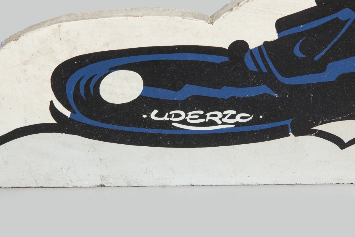 Peinture recto et verso sur une structure en contreplaquée, type P.L.V. Signée de chaque coté.