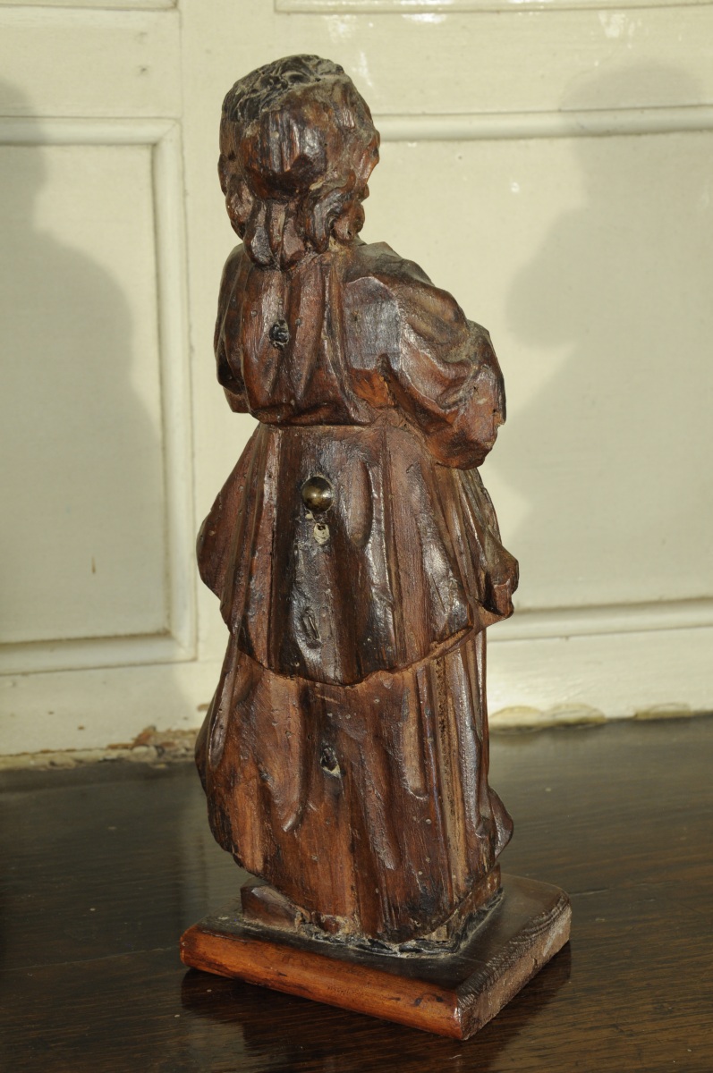 STATUETTE en bois naturel - personnage debout les mains croisées.