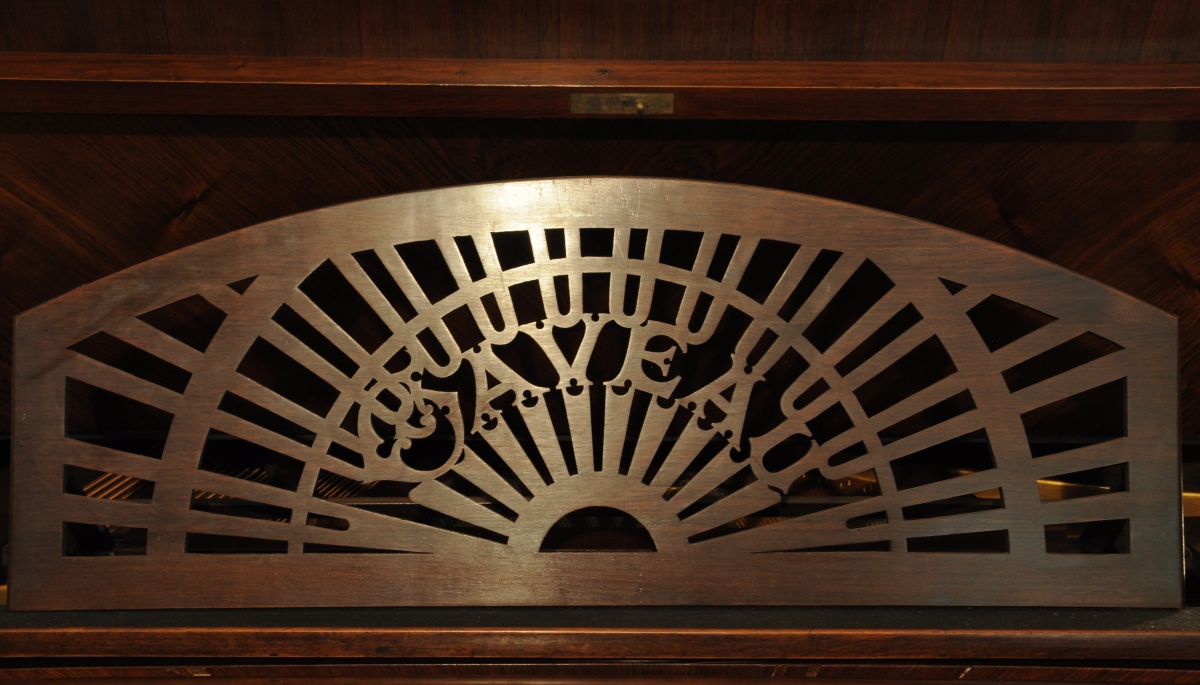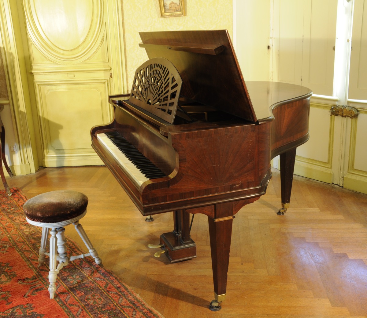 PIANO 1/4 de queue, en placage de palissandre, cadre métallique.