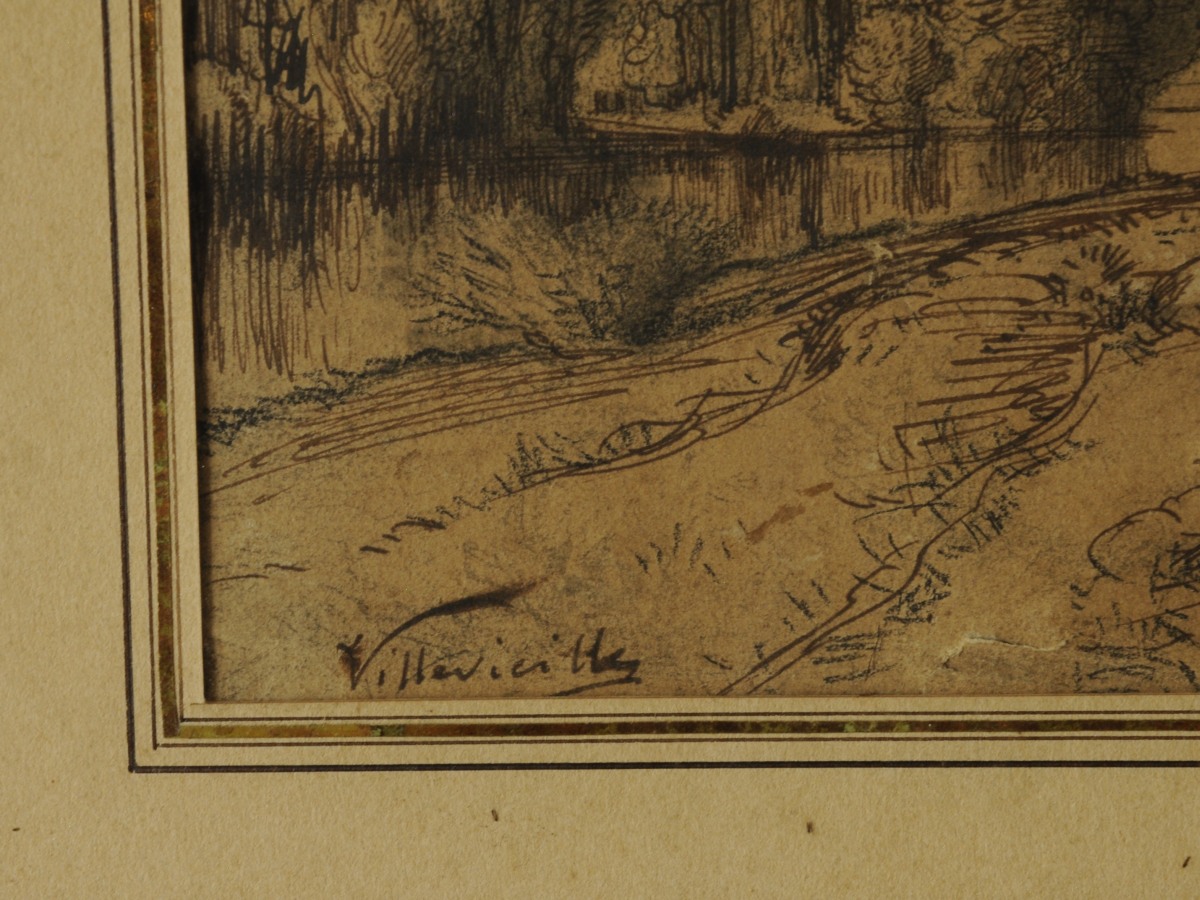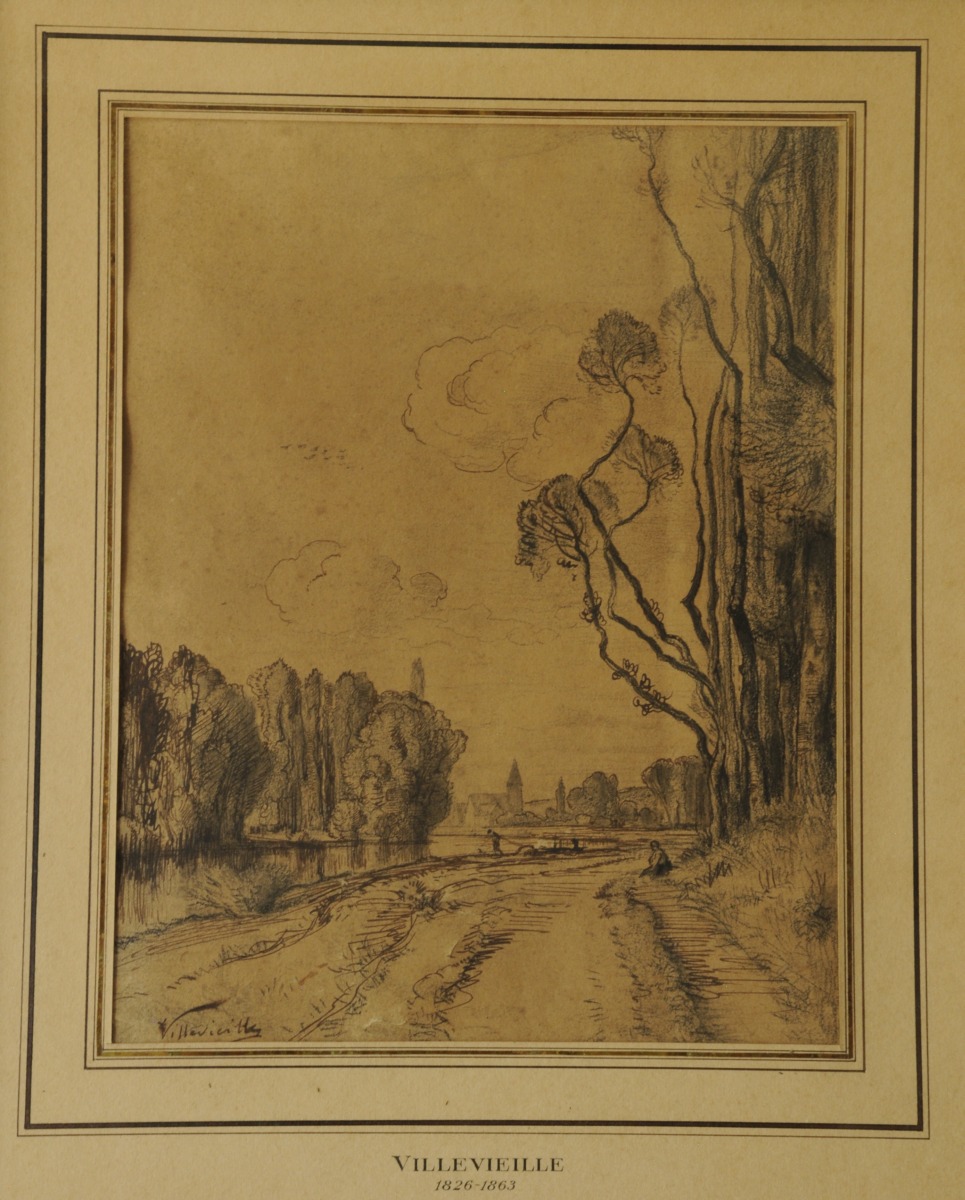 Léon VILLEVIEILLE (1826 - 1863). Bords de rivière. Dessin.26,5 x...