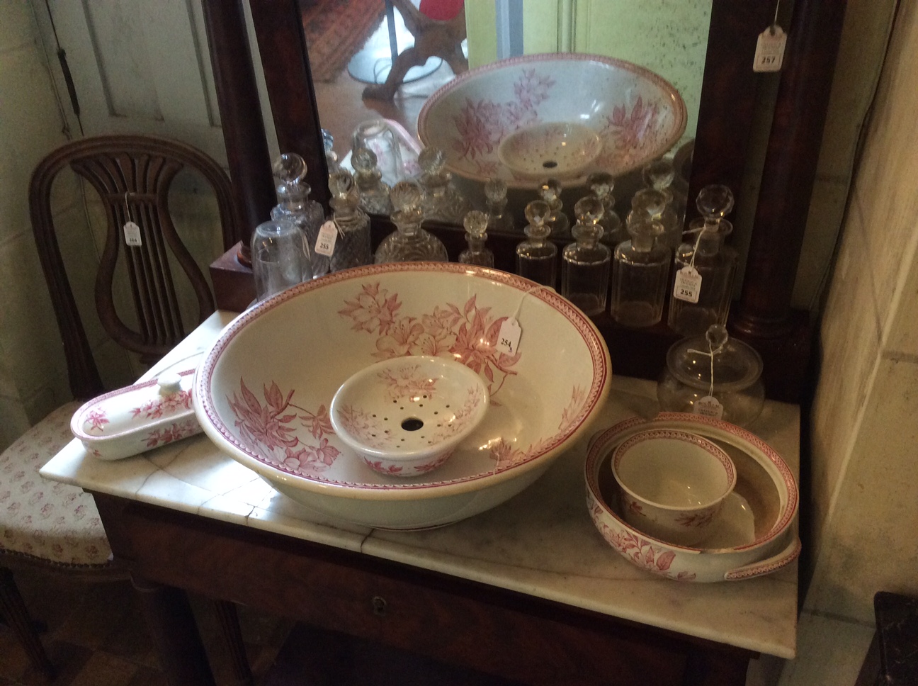 Éléments de GARNITURE DE TOILETTE en faïence.