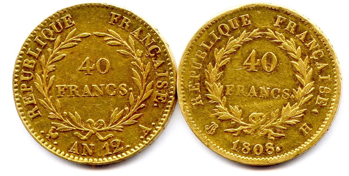 Bonaparte Premier Consul an 12 Paris et Napoléon Ier (tête laurée) 1808 La Rochelle.TB.