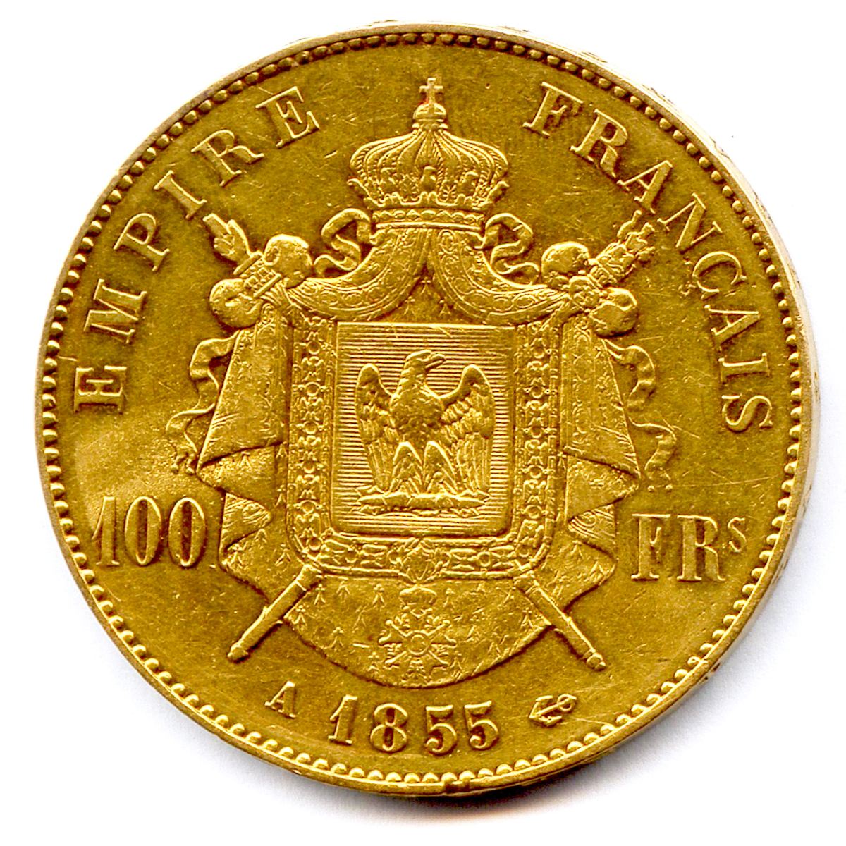 Napoléon III (tête nue) 100 Francs 1855 Paris. TB.