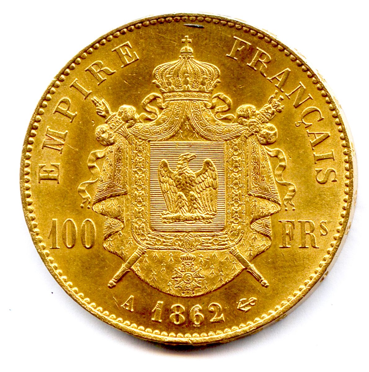 Napoléon III (tête laurée) 100 Francs 1862 Paris. Très beau/Superbe.