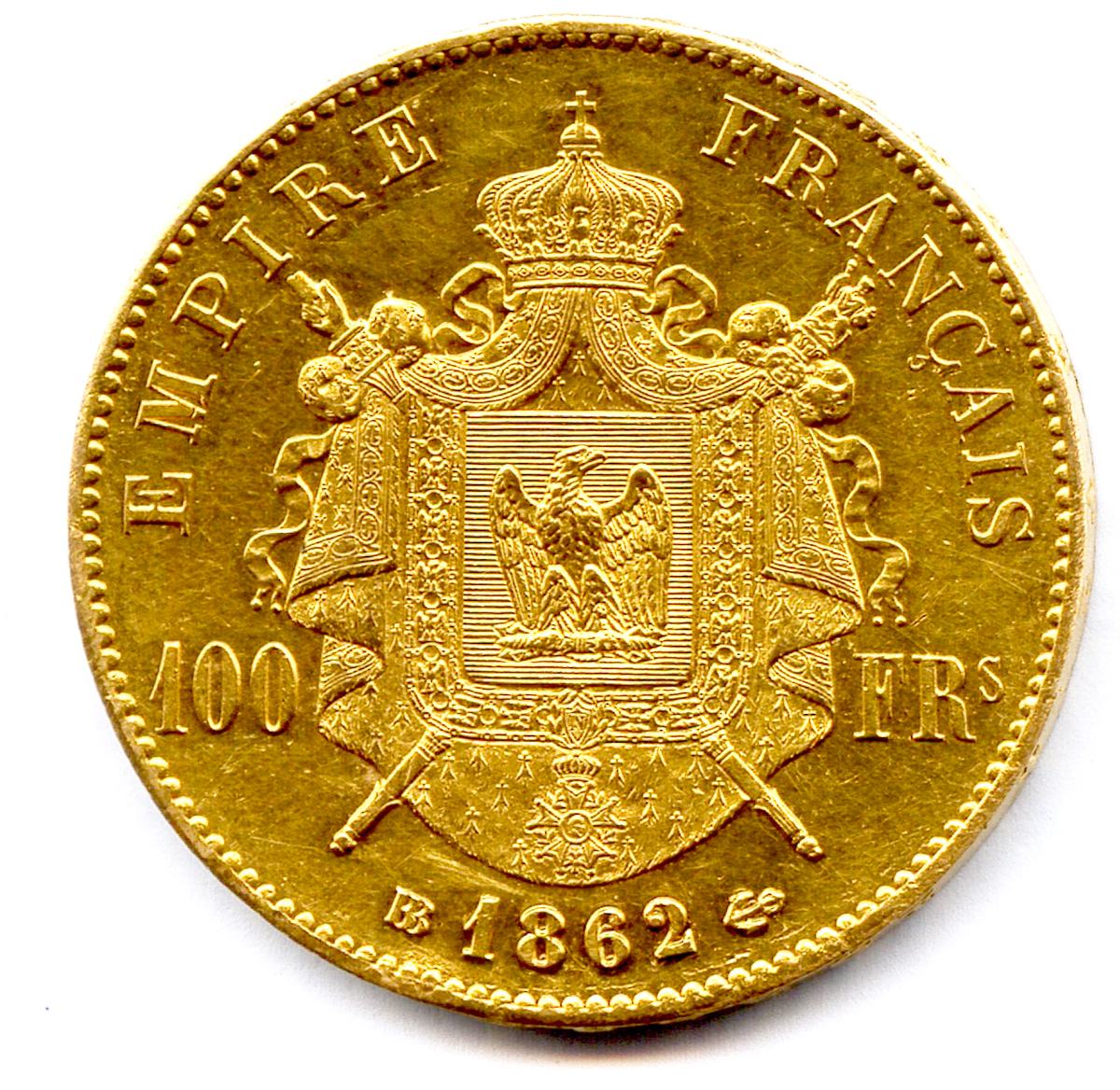 Napoléon III (tête laurée) 100 Francs 1862 Strasbourg. Très beau/Superbe.