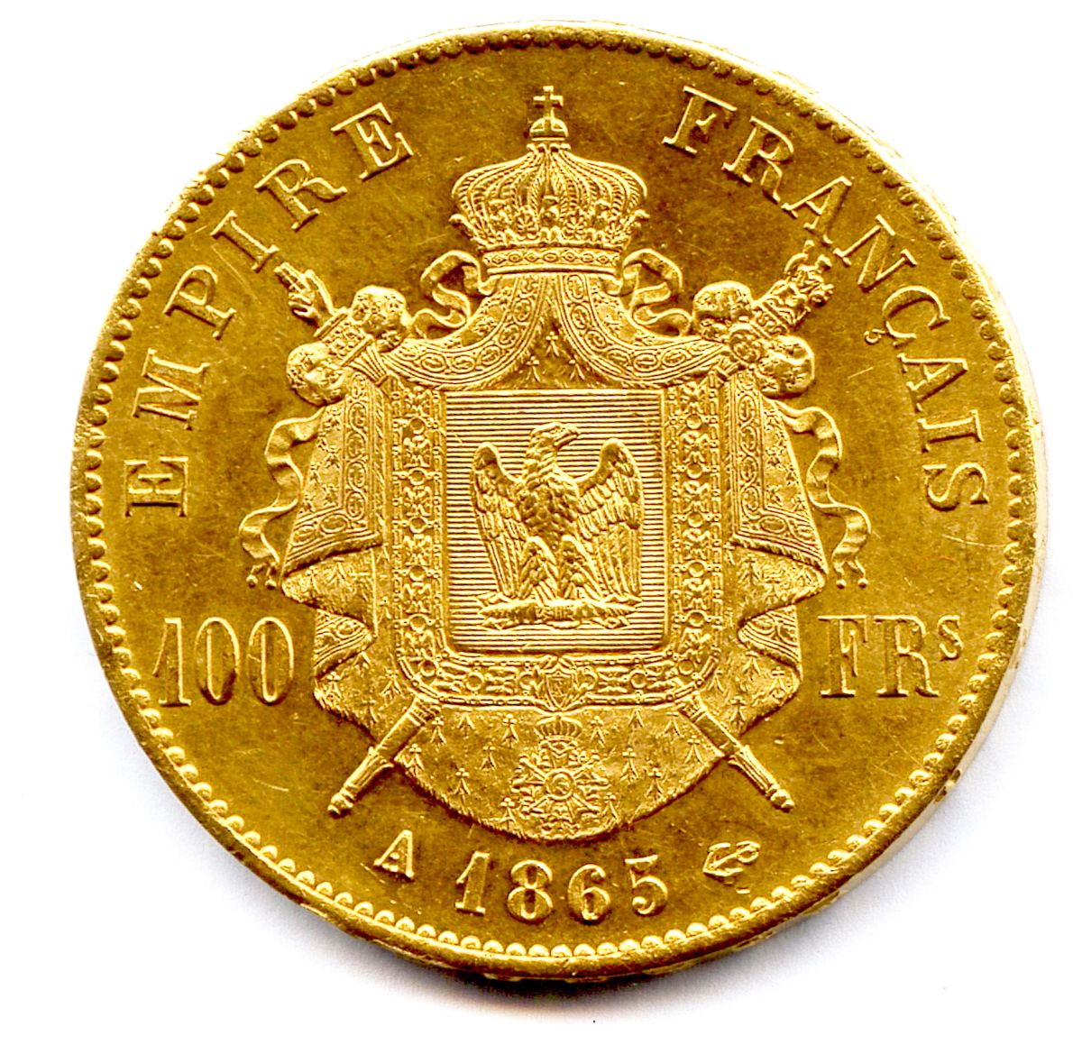 Napoléon III (tête laurée) 100 Francs 1865 Paris. Superbe.