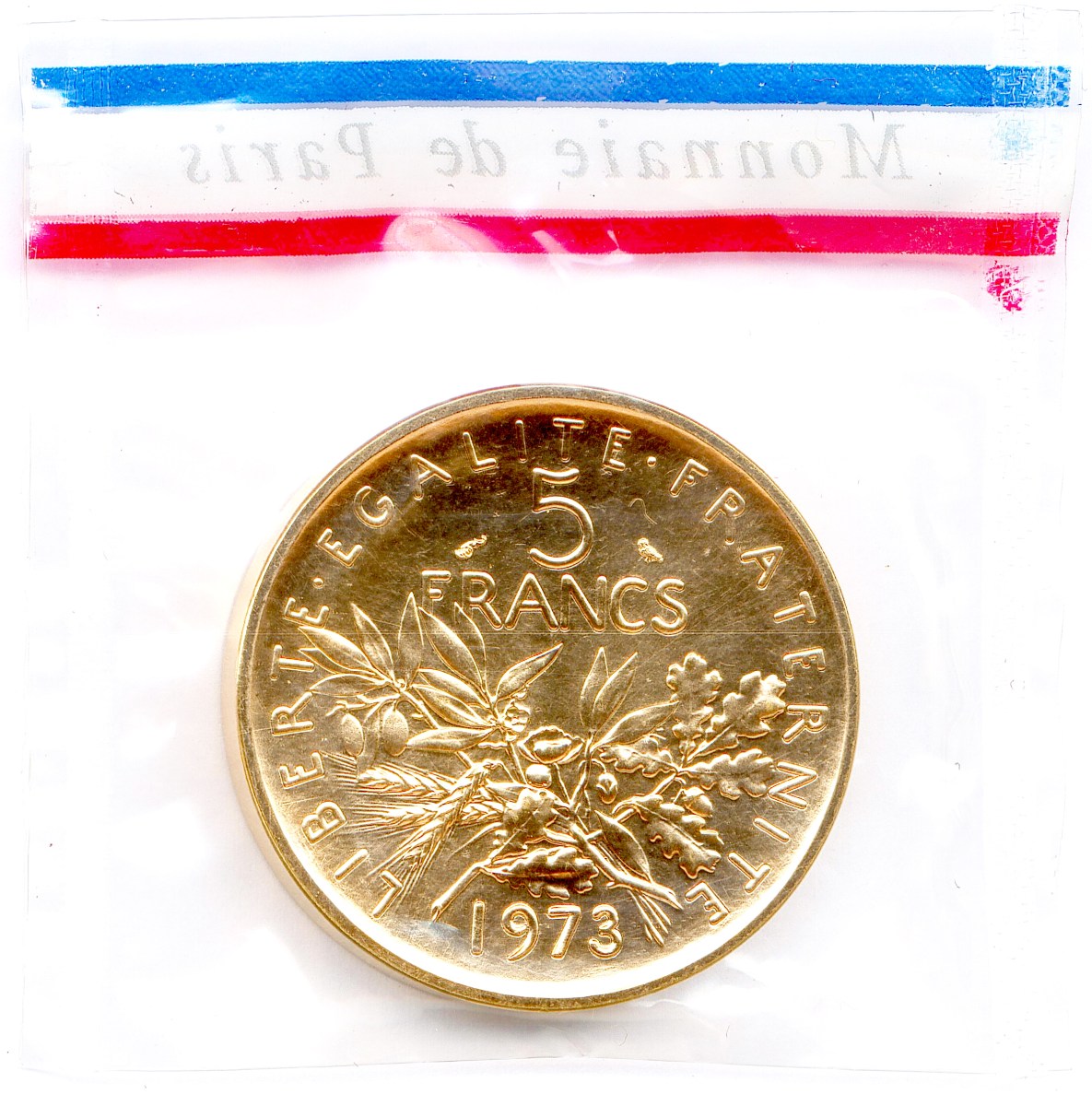 Piéfort en or 5 Francs Semeuse 1973 (38,90g) sous sachet scellé de la Monnaie de Paris. FDC