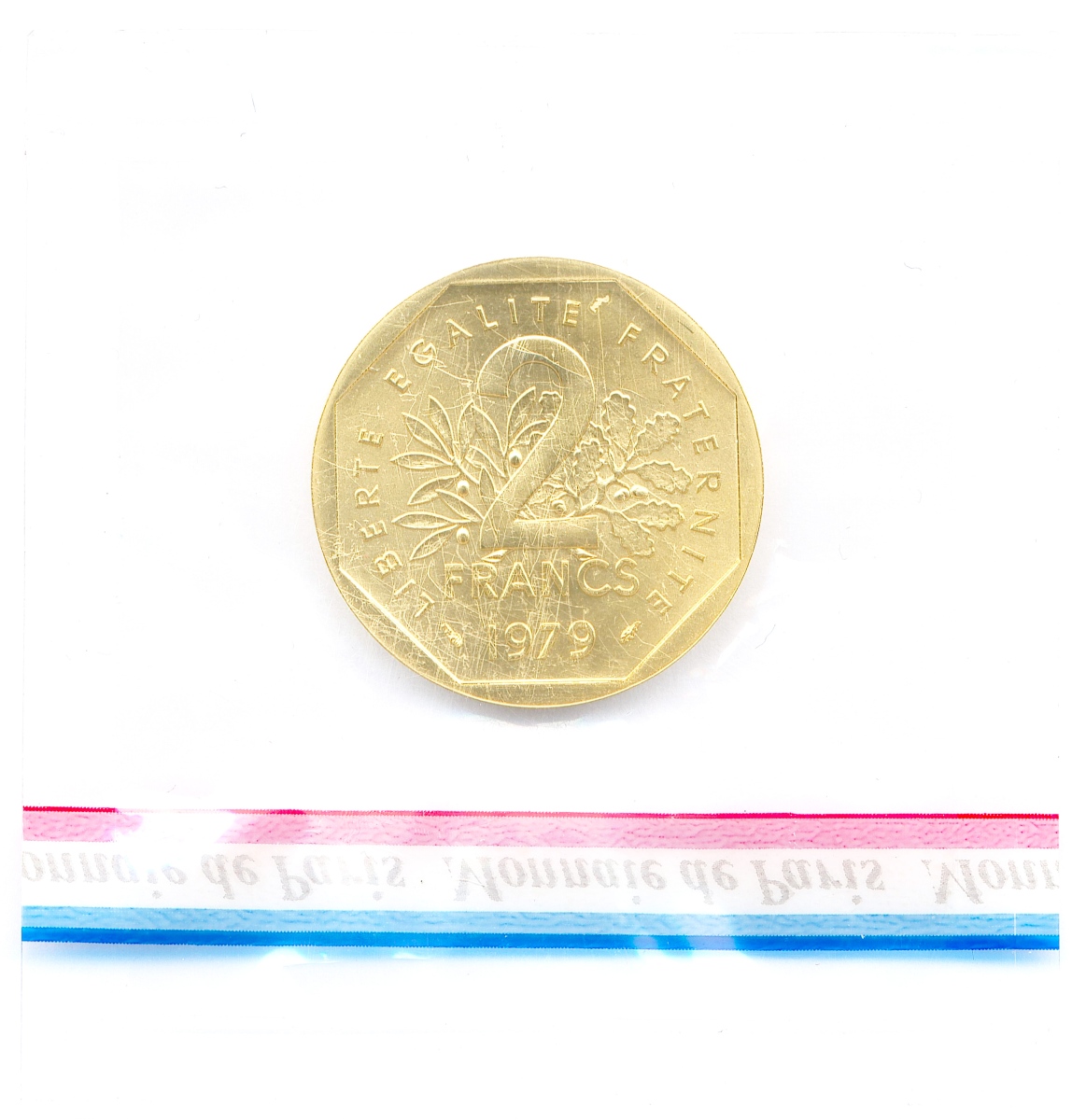 Piéfort en or 2 Francs Semeuse 1979 (30,90g) sous sachet scellé de la Monnaie de Paris (avec son certificat n° DXXVII).