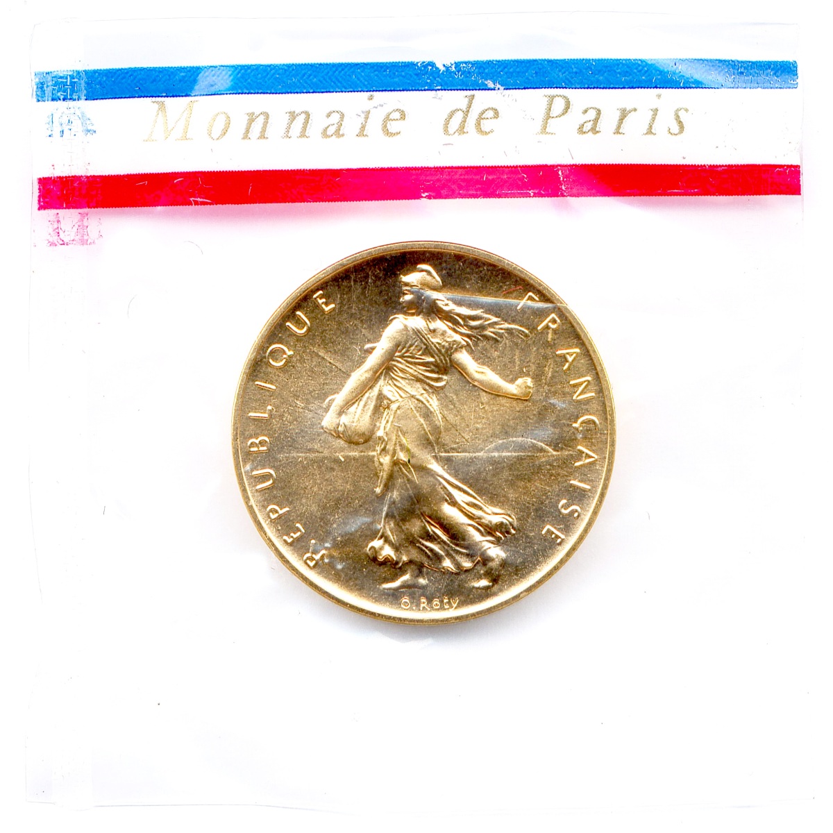 Piéfort en or 1 Franc Semeuse 1973 (24,33g) sous sachet de la Monnaie de Paris.