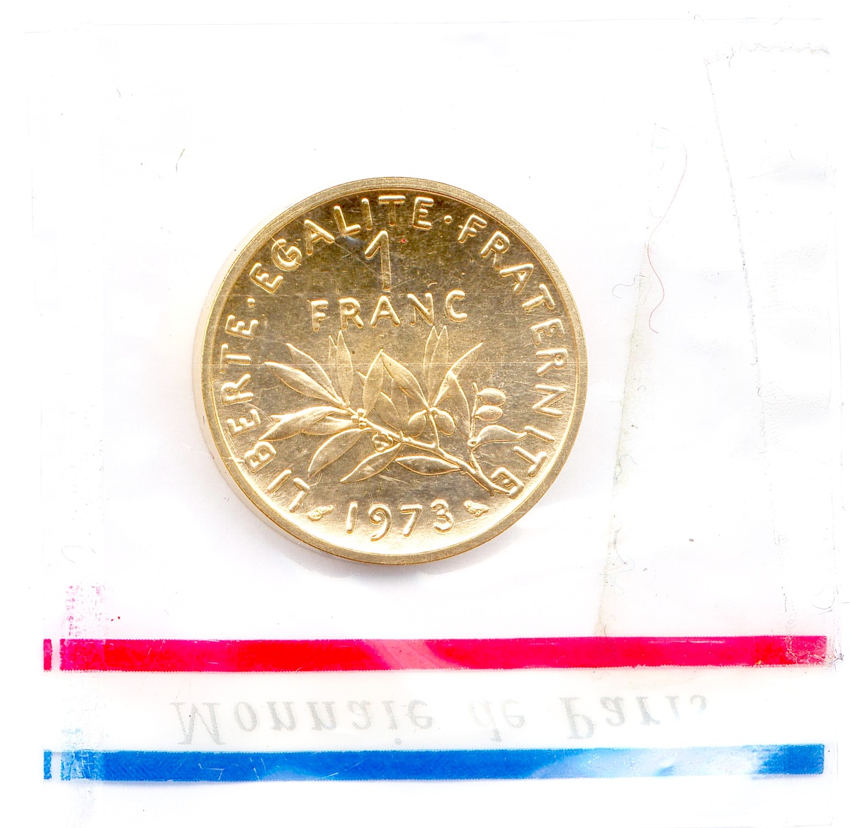 Piéfort en or 1 Franc Semeuse 1973 (24,33g) sous sachet de la Monnaie de Paris.