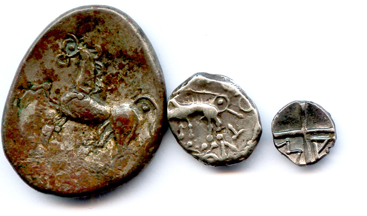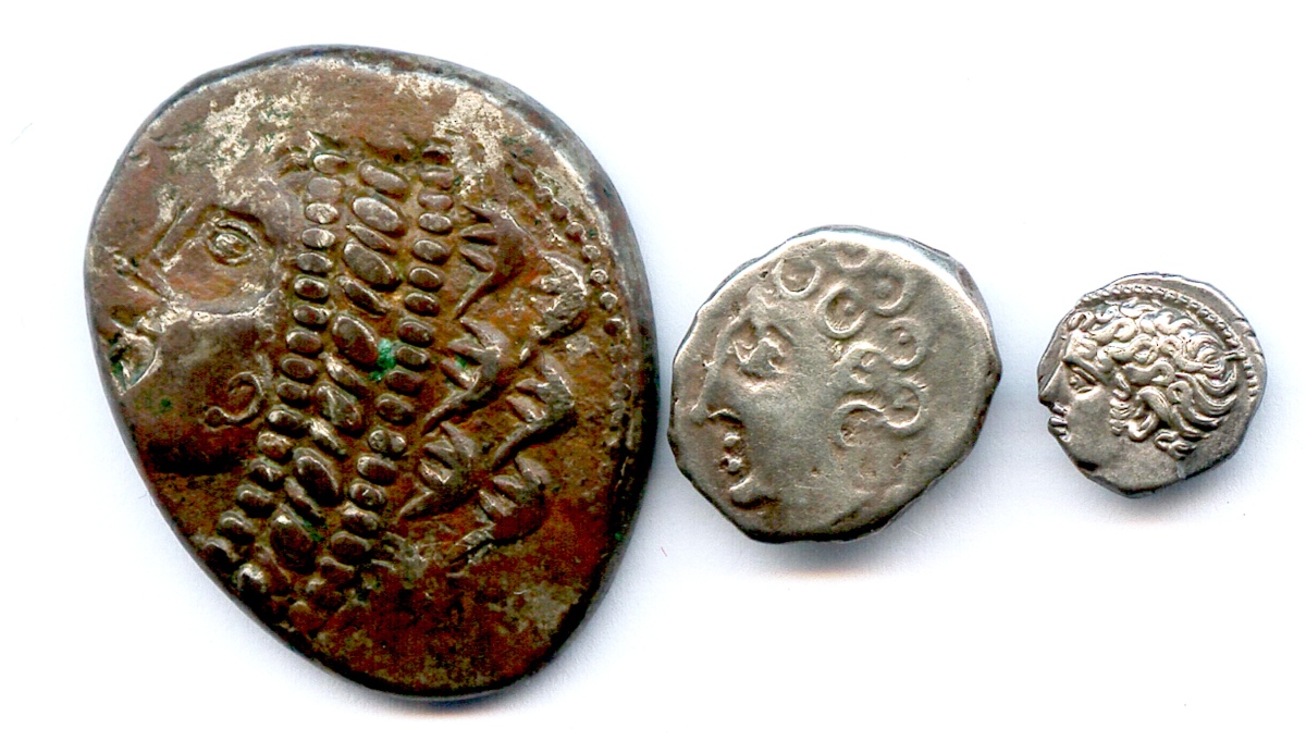 tétradrachme des Celtes du Danube, hémidrachme au sanglier, obole de Marseille.