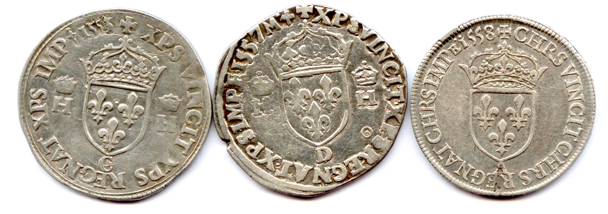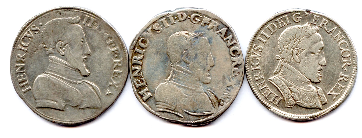 Lot de trois testons d'argent d'Henri II (1547-1559):
