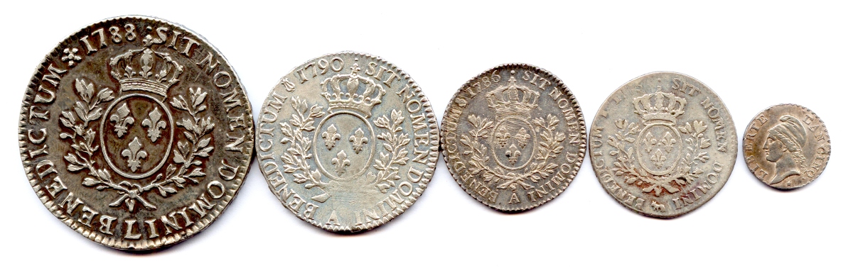 Écu aux lauriers 1788 Bayonne, Demi-écu 1790 Paris (nettoyé),