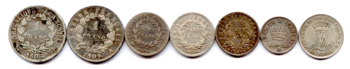 Franc 1808 Lille, Franc 1809 Paris, Demi-franc 1808 Strasbourg, 1809 Lille et 1810 Paris,