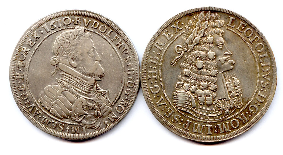 Lot de deux thalers autrichiens en argent: Rodolphe II (1576-1610) thaler 1610 Hall et Léopold (1657-1705) Thaler 1701 Hall.