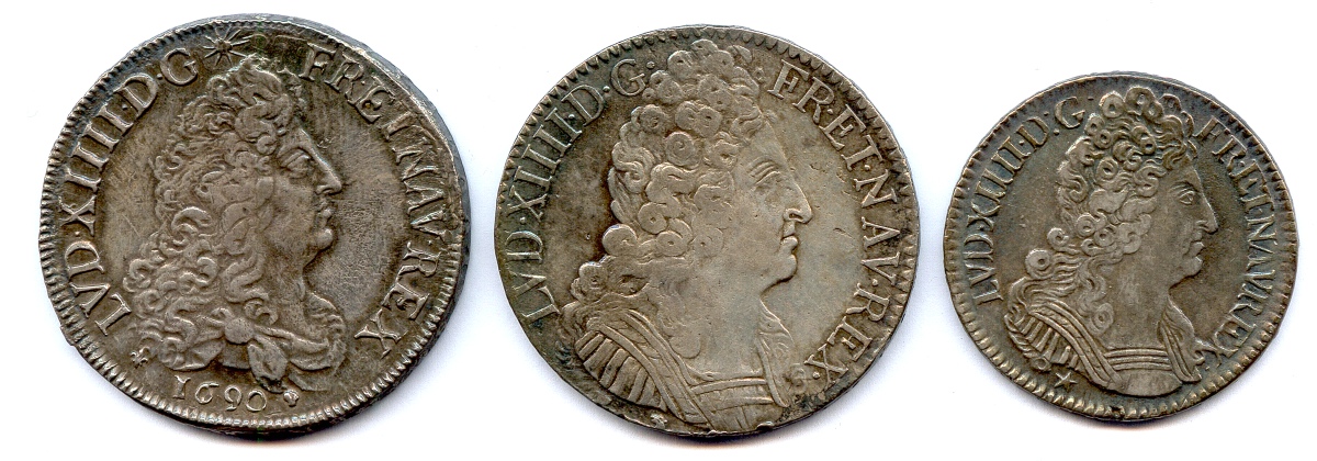 Lot de trois monnaies dargent de Louis XIV (1643-1715):