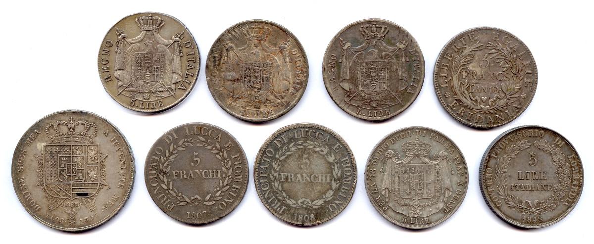 Royaume dItalie 5 lire 1808 Milan (retouché), 5 lire 1809 Milan, 5 Lire 1811 Milan,