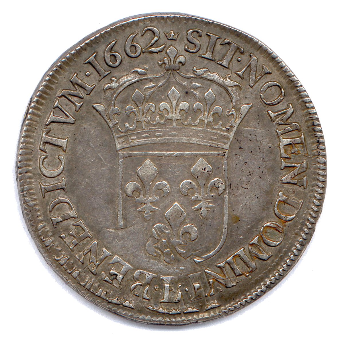 Demi-écu dargent au buste juvénile 1662 (croissant/couronne) B = Rouen.