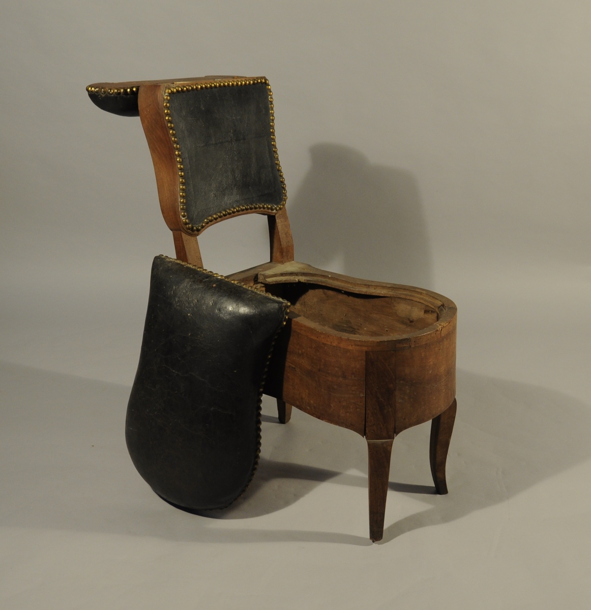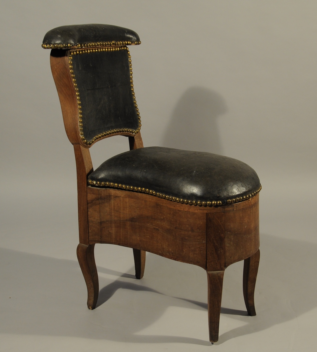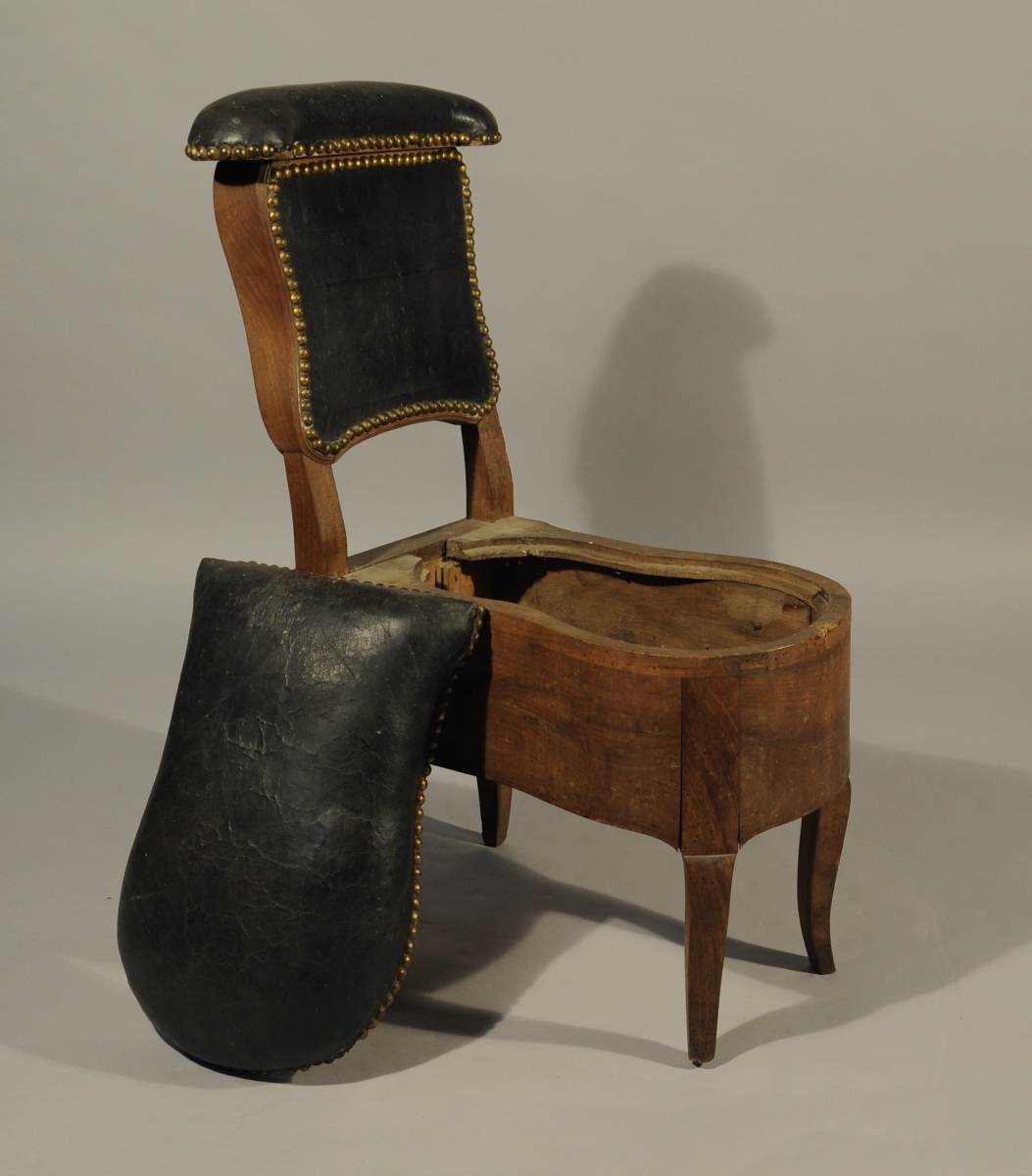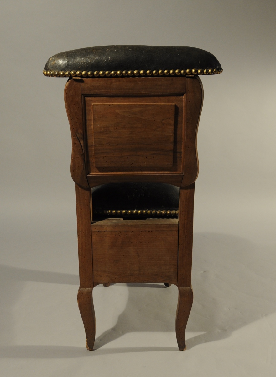 BIDET en noyer de forme violonée reposant sur quatre pieds cambrés. L'accoudoir découvre trois compartiments, celui du centre doublé de plomb.