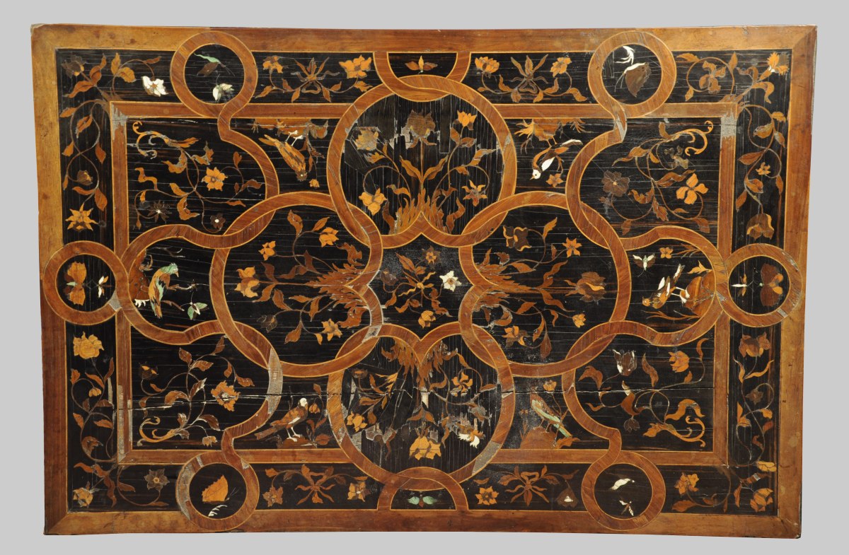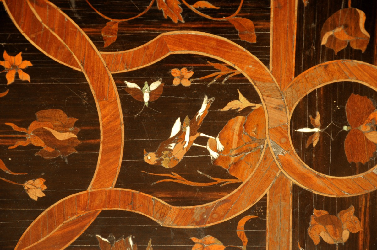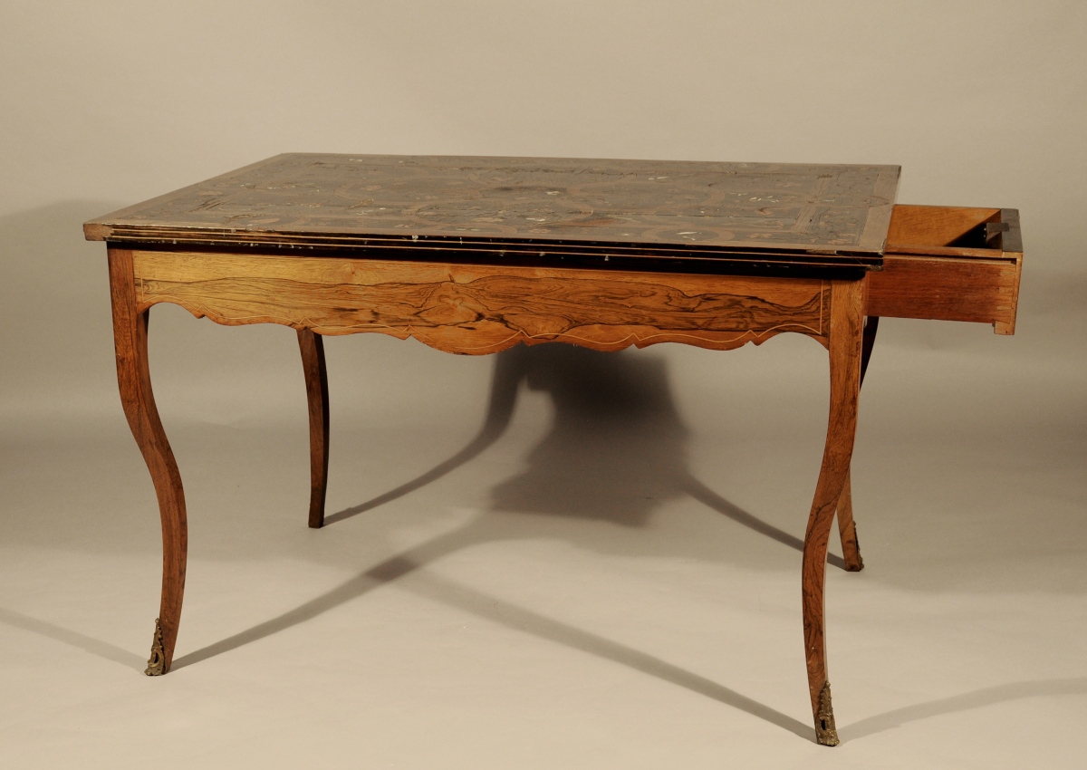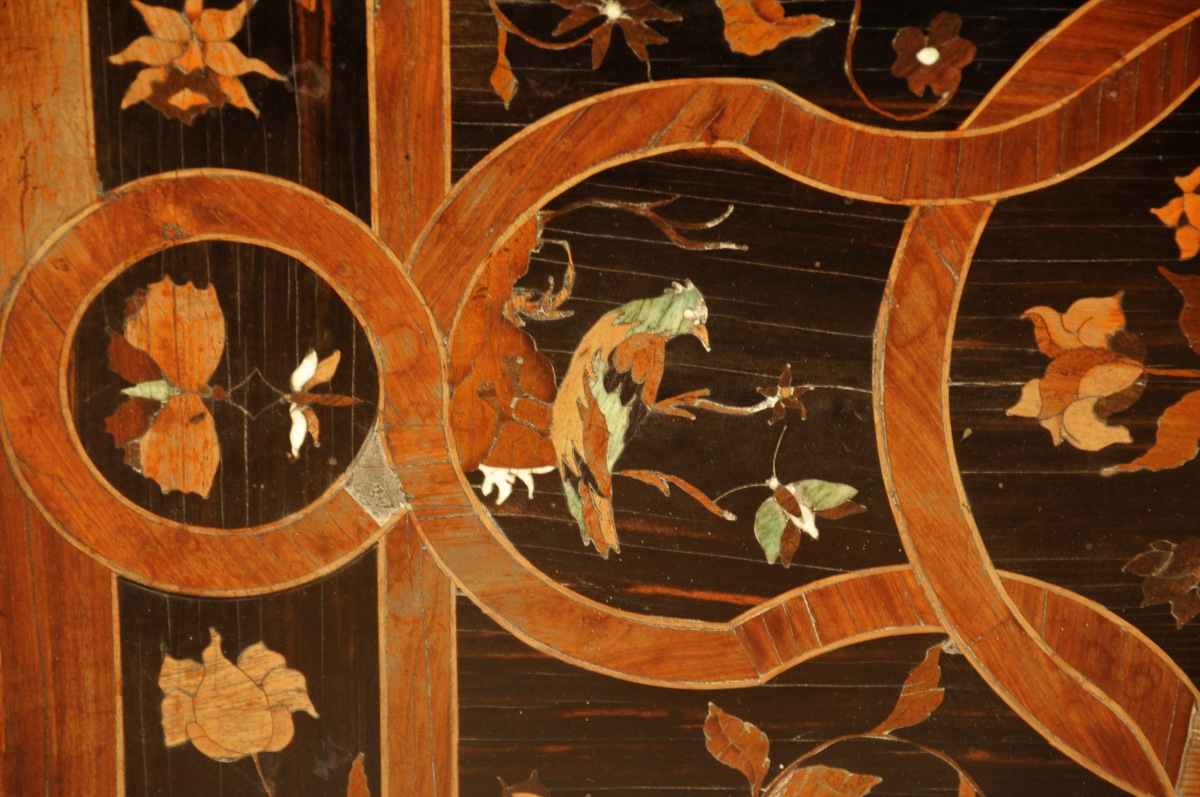 Haut. 70, Long. 111, Larg. 74.5 cm. (accidents, restaurations et manques au placage.)