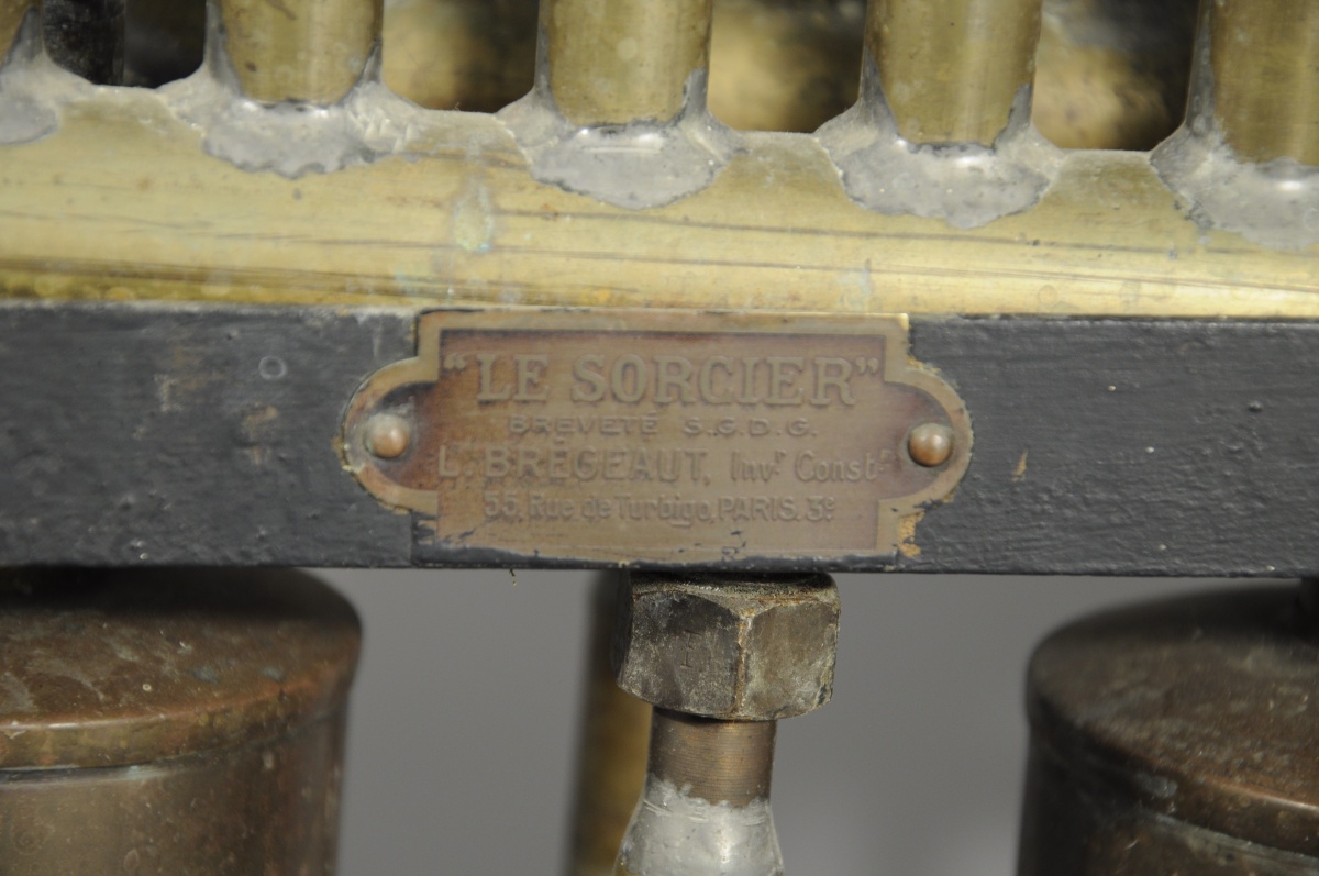 Plaque: " LE SORCIER " brevete SGDG. L. BRÉGEAULT, Invr. Constr. 55, rue de Turbigo Paris 3è.