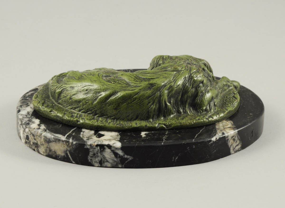 Bronze à patine verte, signé sur la terrasse. Socle de marbre gris Sainte-Anne (restauré).