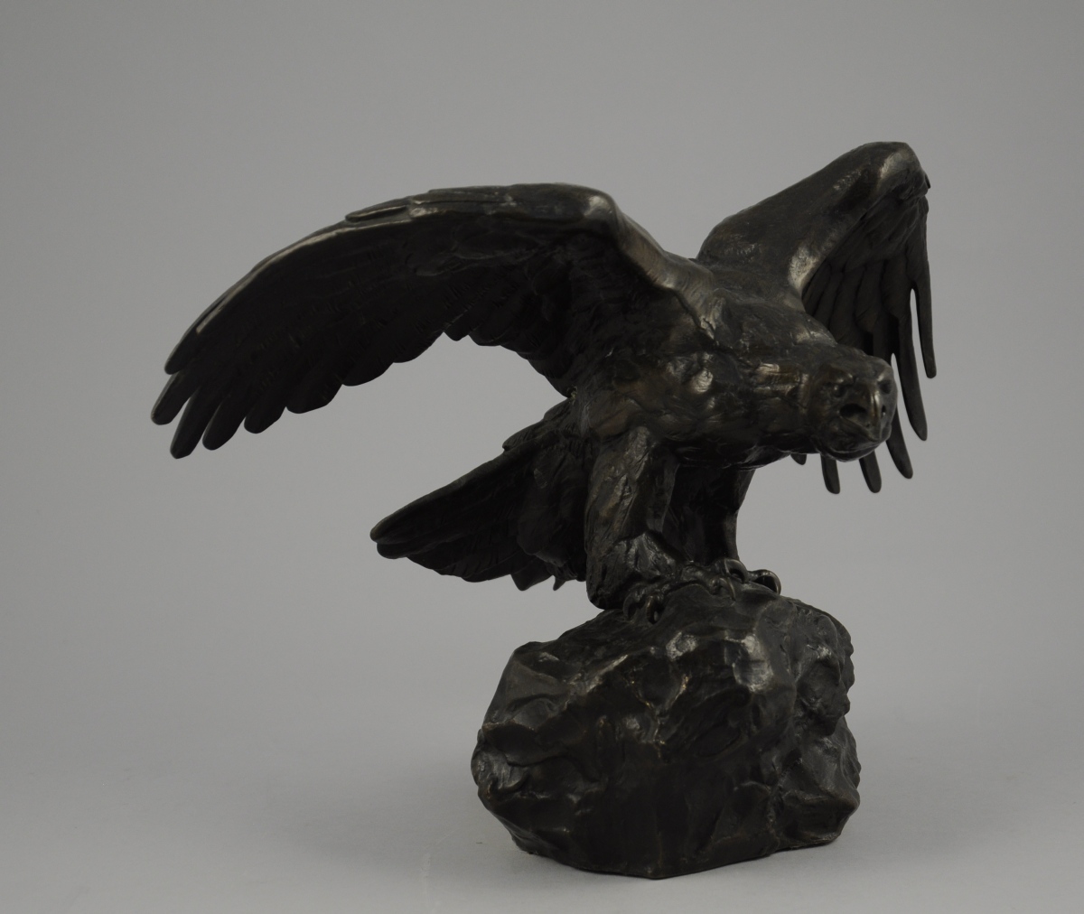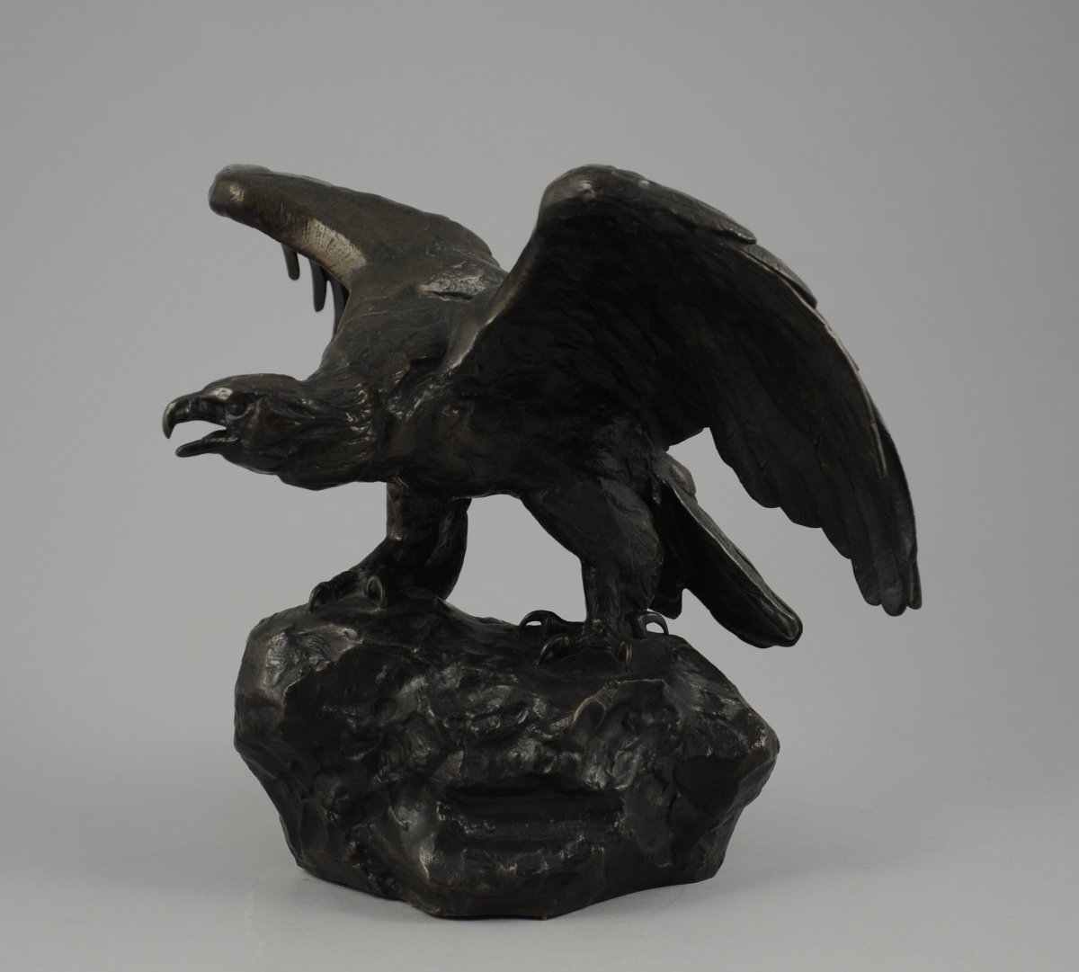 Bronze à patine brune, signé "AL BARYE" sur le rocher.