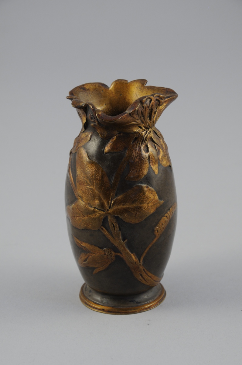 Petit VASE en bronze patiné orné de fleurs et de lierres en demi-relief.