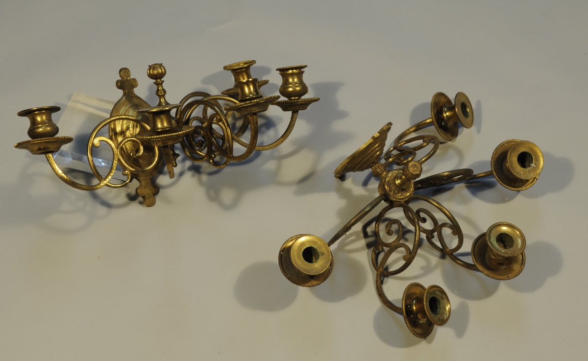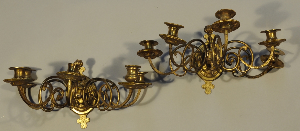 PAIRE D'APPLIQUES en bronze doré à 5 bras de lumière. Frises de fruits stylisés et agrafes.