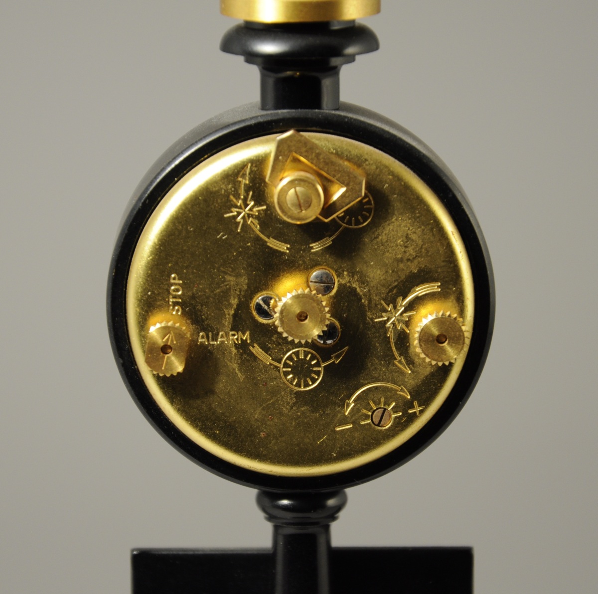 JAEGER. Réveil réverbère en métal et laiton, avec le panneau de "Rue de la Paix". Haut. 28 cm.