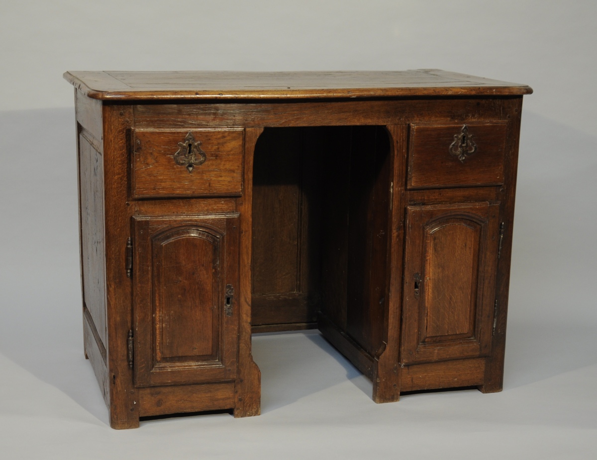 BUREAU À CAISSONS en bois naturel mouluré ouvrant par deux tiroirs et deux portes.