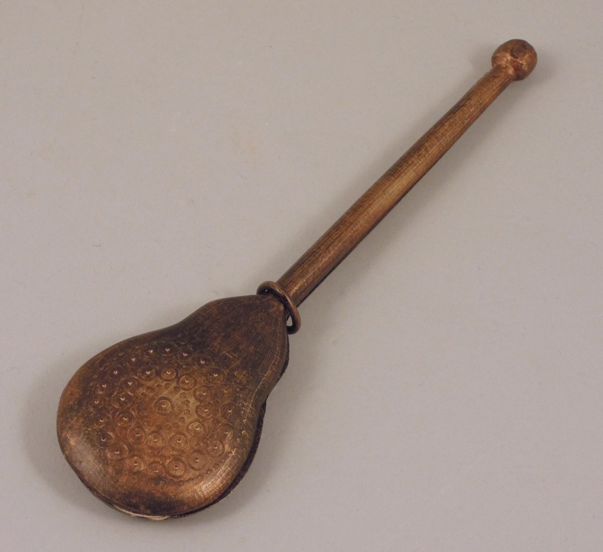 CHINE? BALANCE à OPIUM en bronze, fléau en os. Etui en bronze patiné ornementé.