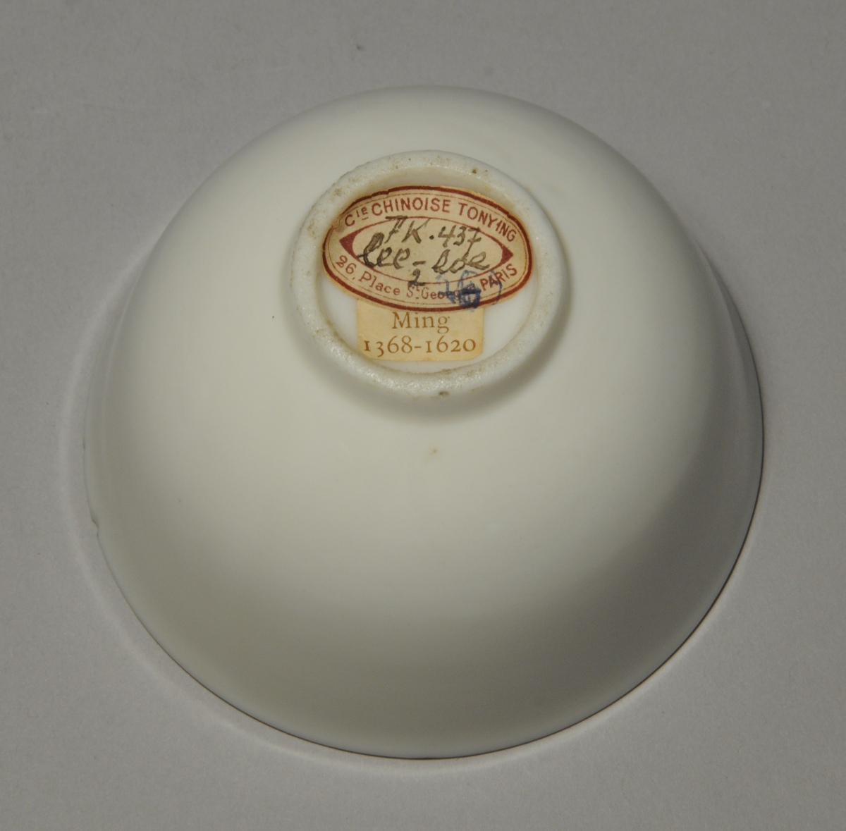 CHINE. Petit BOL légèrement évasé et VASE à long col orné d'un qilong en relief en porcelaine blanche de Dehua.