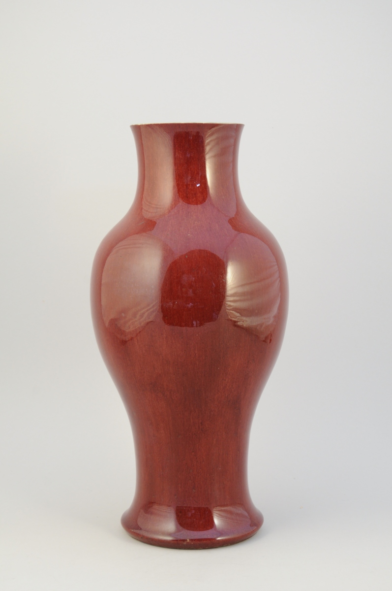 CHINE. VASE de forme balustre en porcelaine émaillée sang-de-boeuf.