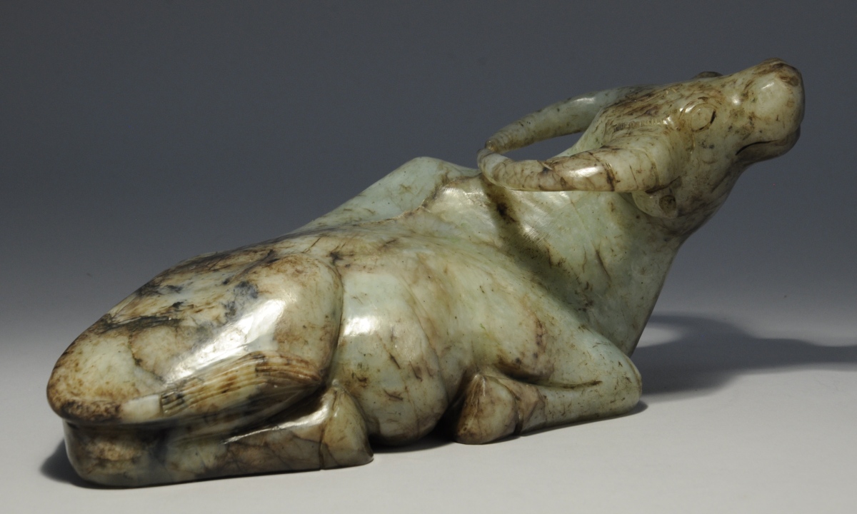 CHINE. BUFFLE ALLONGÉ en néphrite.