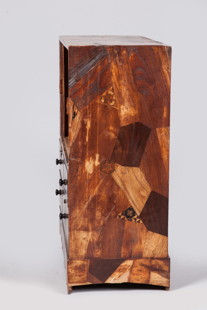 YOSEGI CABINET. Marquetry. Richly decorated with geometric figures and floral motifs. Japan, Meiji period, end the 19th - beginning of the 20th century. Provenance: collection of René Clément, moviemaker.
