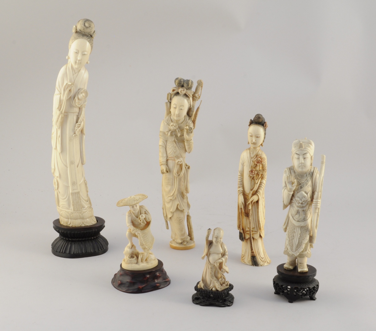 CHINE. Six OKIMONOS en ivoire sculpté:
