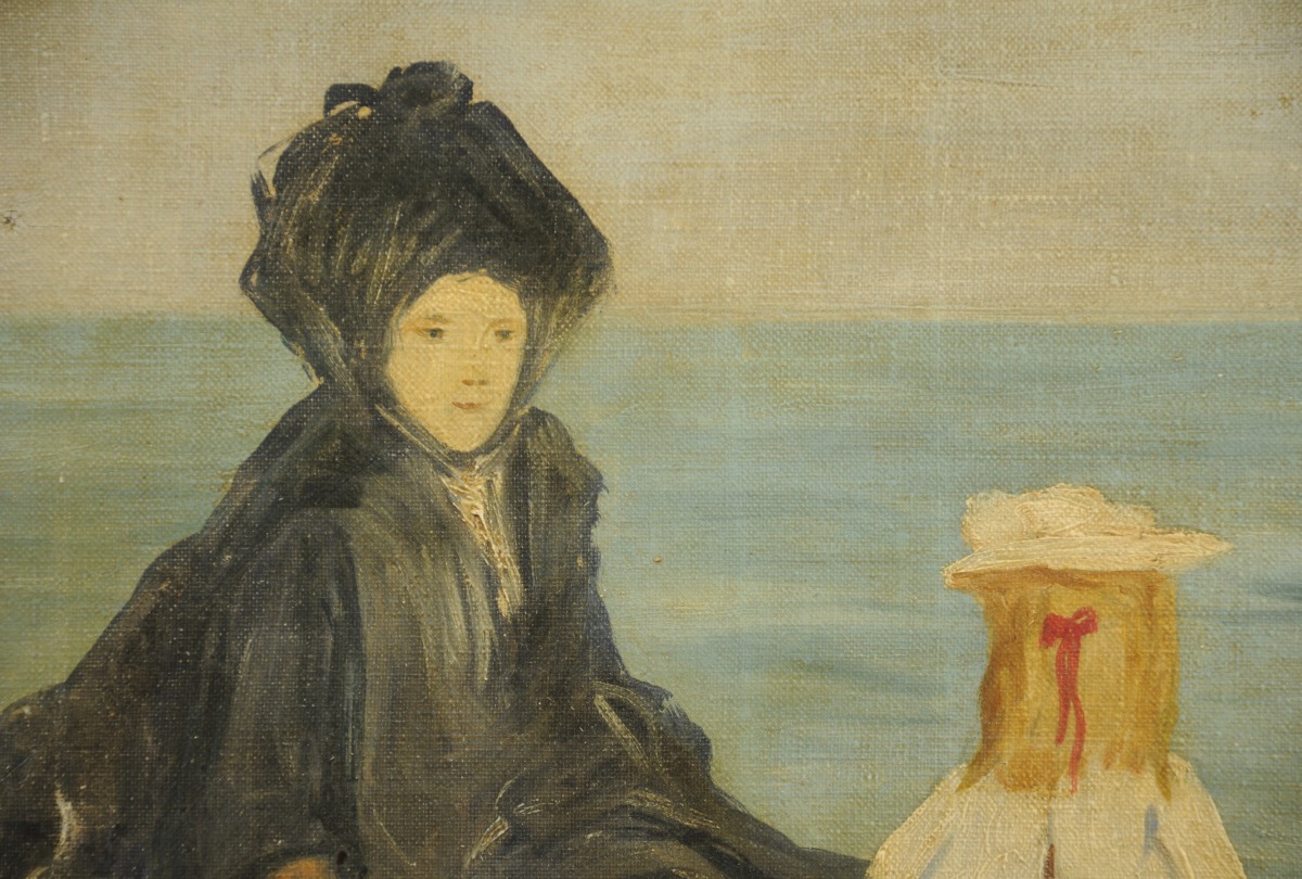 Joint: d'après Berthe MORISOT. Les bords de mer. Toile signée en bas à droite. 38,5 x 46 cm.