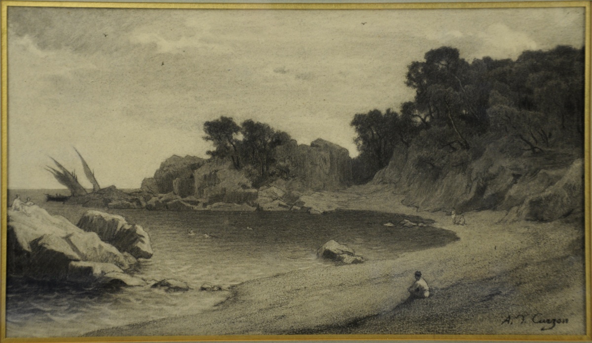 Paul  Alfred de CURZON (1820-1895)Crique.Lithographie signée en bas à...