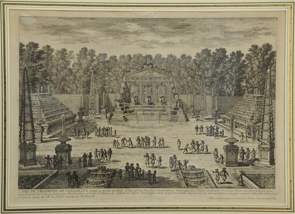 - "l'Arc de Triomphe de Versailles", gravure ancienne XVIIIe, 22,5 x 32 cm.