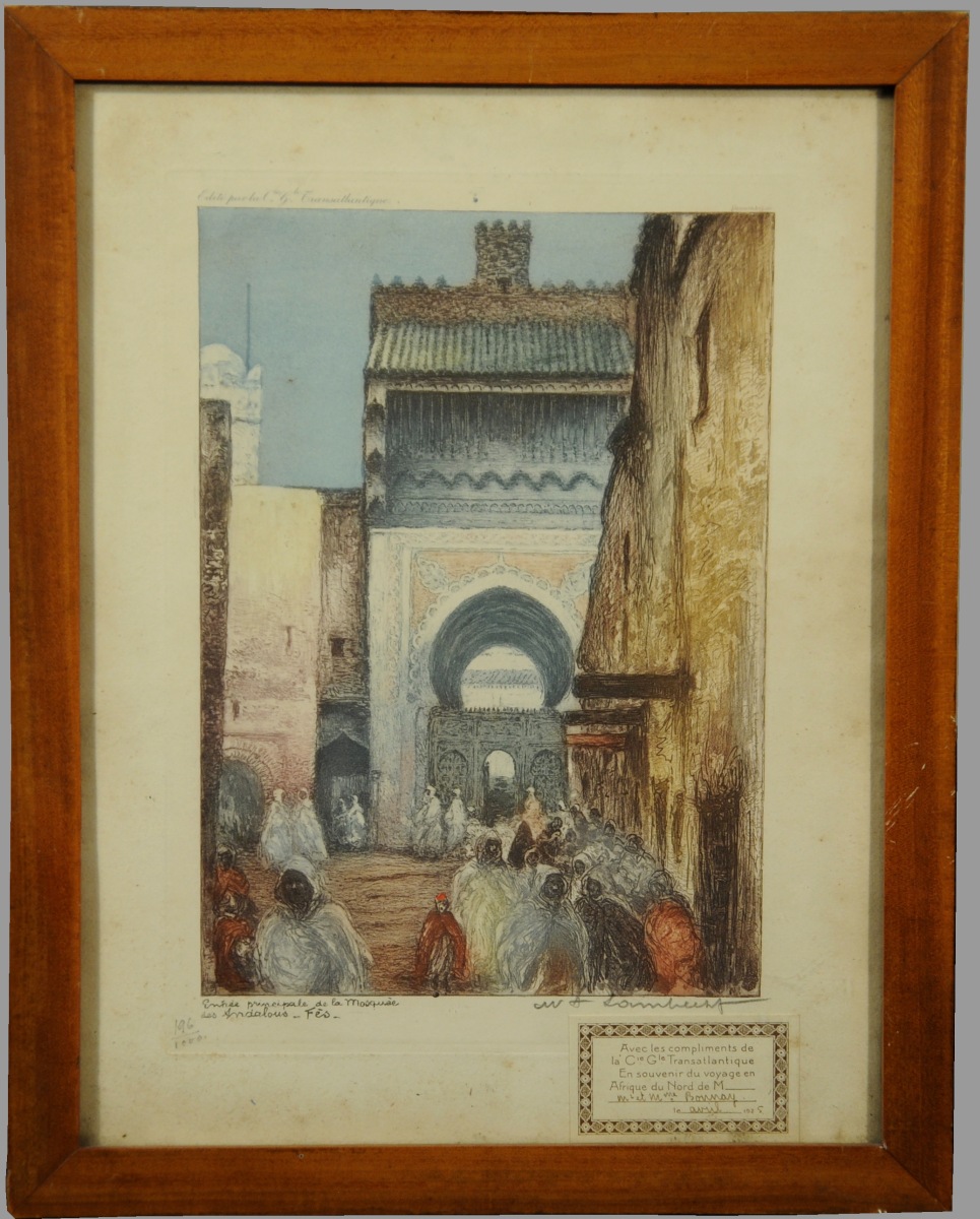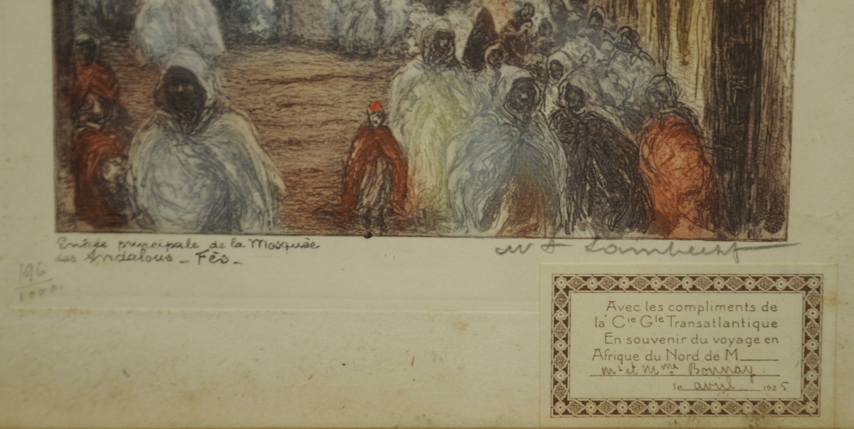 Étiquette: "Avec les compliments de la Cie Gle Transatlantique en souvenir du voyage en Afrique du nord de...M. et Mme Bonnay avril 1925".