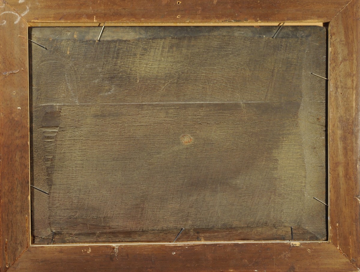 Peintre du siècle d'or Hollandais, Thievaert, à qui notre panneau est attribué, ne verse pas dans une scène mythologique classique mettant en scène Jupiter, mais explore avec talent le côté sombre de la divination, bravant ainsi l'interdit religieux exprimé dans le livre de Samuel "Laissez les mort là où ils sont!". Son audace dépasse les représentations bibliques de "Saül et la sorcière d'En-dor" pour mettre en scène un jeune contemporain hollandais, richement vêtu, les bras tendus vers un autel où trône Jupiter, personnifié par son aigle et ses foudres. Une vieille sorcière effrayante enscence l'idole. Autour de lui quatre jeune femmes aux pieds nus, épaules découvertes et poitrine avantageuse l'accompagnent dans sa demande d'oracle auprès du père des dieux. Le traitement caravagesque en clair obscure confère à cette scène une manière inquiétante, la source lumineuse étant située derrière l'idole. Après les siècles de chasse aux sorcières, bien avant la tolérance du Grand siècle ni même les ombres romantiques du XIXe, Thievaert offre l'image d'un artiste libre et transgressif.