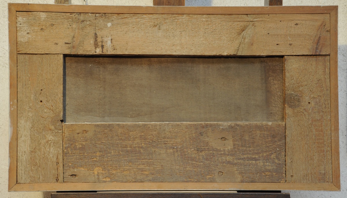 Encadrement en bois sculpté, doré et laqué gris. Ancien dessus de porte.