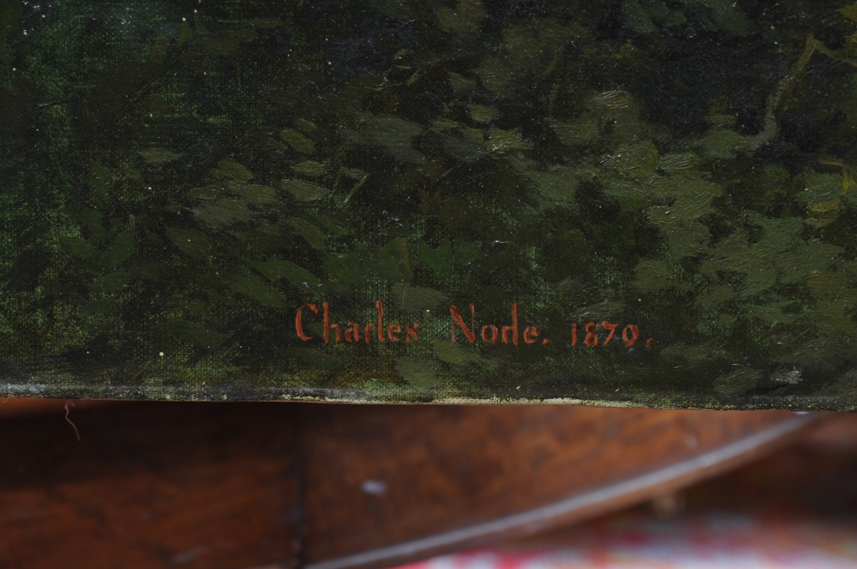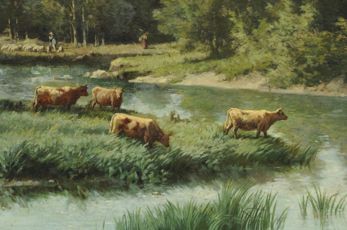 Charles NODE (1811-1886).Paysage avec rivière et troupeau.Huile sur toile.Signé en...